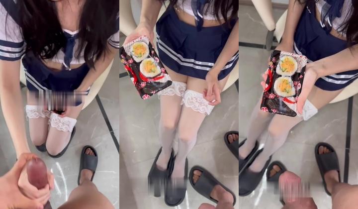 精液盛宴!变态老哥调教母狗堂妹,加精寿司+美足交,射逼上内裤里